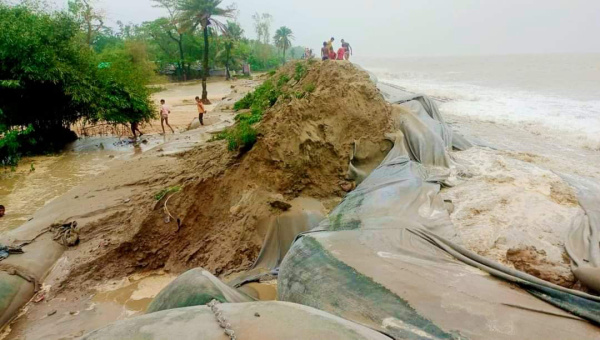 ঘূর্ণিঝড় রেমালার প্রভাবে ক্ষতিগ্রস্ত হয় আলী আকবর ডেইল ইউনিয়নের তেলিপাড়া এলাকর বেড়িবাঁধ। ছবি – ইউএনএ