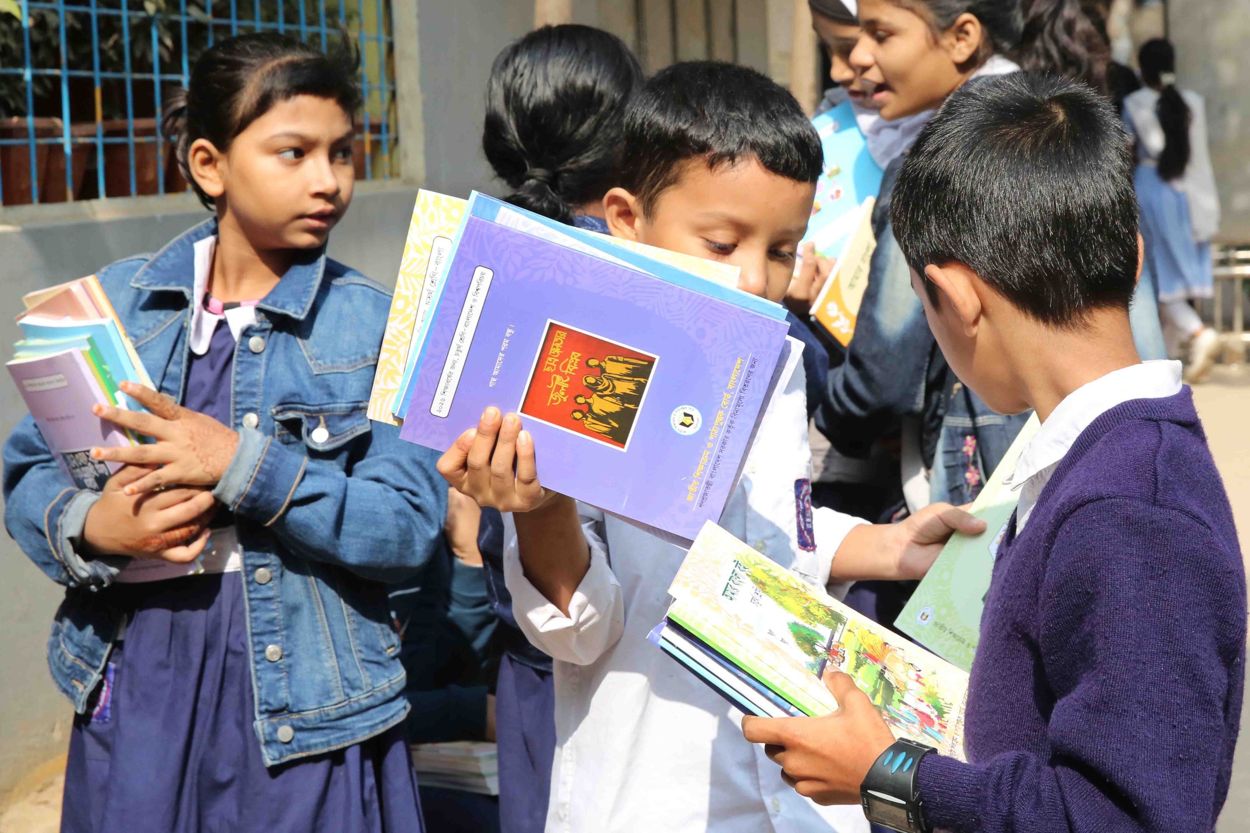বছরের প্রথম দিনেই বৃহস্পতিবার (০১লা জানুয়ারি ২০২০৬)শিক্ষাপ্রতিষ্ঠান গুলোতে নতুন বই পেয়ে উচ্ছাসিত কোমলমতি শিক্ষার্থীরা। ছবিটি রাজধানীর শান্তিবাগউচ্চ বিদ্যালয় থেকে তোলা। ছবি:খন্দকার আসাদ উজ জামান/ ইউএনএবছরের প্রথম দিনেই বৃহস্পতিবার (০১লা জানুয়ারি ২০২০৬)শিক্ষাপ্রতিষ্ঠান গুলোতে নতুন বই পেয়ে উচ্ছাসিত কোমলমতি শিক্ষার্থীরা। ছবিটি রাজধানীর শান্তিবাগউচ্চ বিদ্যালয় থেকে তোলা। ছবি:খন্দকার আসাদ উজ জামান/ ইউএনএনতুন বই পেয়ে উচ্ছাসিত কোমলমতি শিক্ষার্থীরা। সহপাঠীরা নতুন বই হাতে পেয়ে একটু চোখ বুলিয়ে নিচ্ছে। ছবি:খন্দকার আসাদ উজ জামান/ ইউএনএ