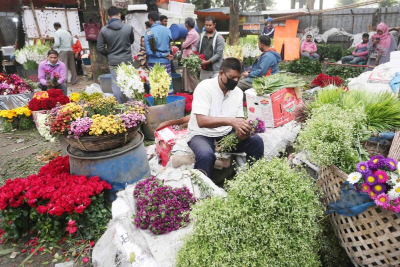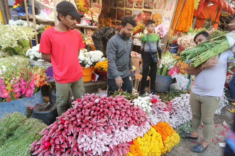 ফাল্গুন আর ভালোবাসা দিবসকে কেন্দ্র করে ব্যাস্ততা বেড়েছে শাহবাগের ফুলের দোকানগুলোতে। সেইসাথে বেড়েছে ক্রেতাদের আনাগোনা। ফটো: ইউ এন এ।